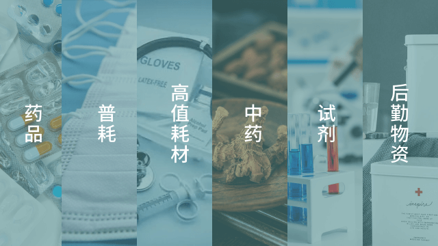 支持药品、普耗、高植耗材、试剂、中药材、后勤物资的六大类品种