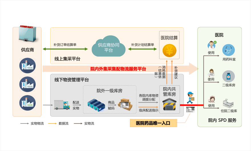 传世药品SPD以院内药品管理为主,覆盖药库、门诊药房、住院药房,甚至可以深至药柜、摆药机、急救车的细粒度管理。