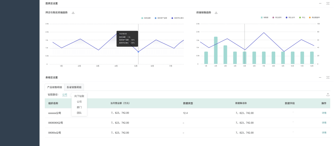 支持多维度的报表查询,同时也支持常用的筛选进行多维度的查询报表。
